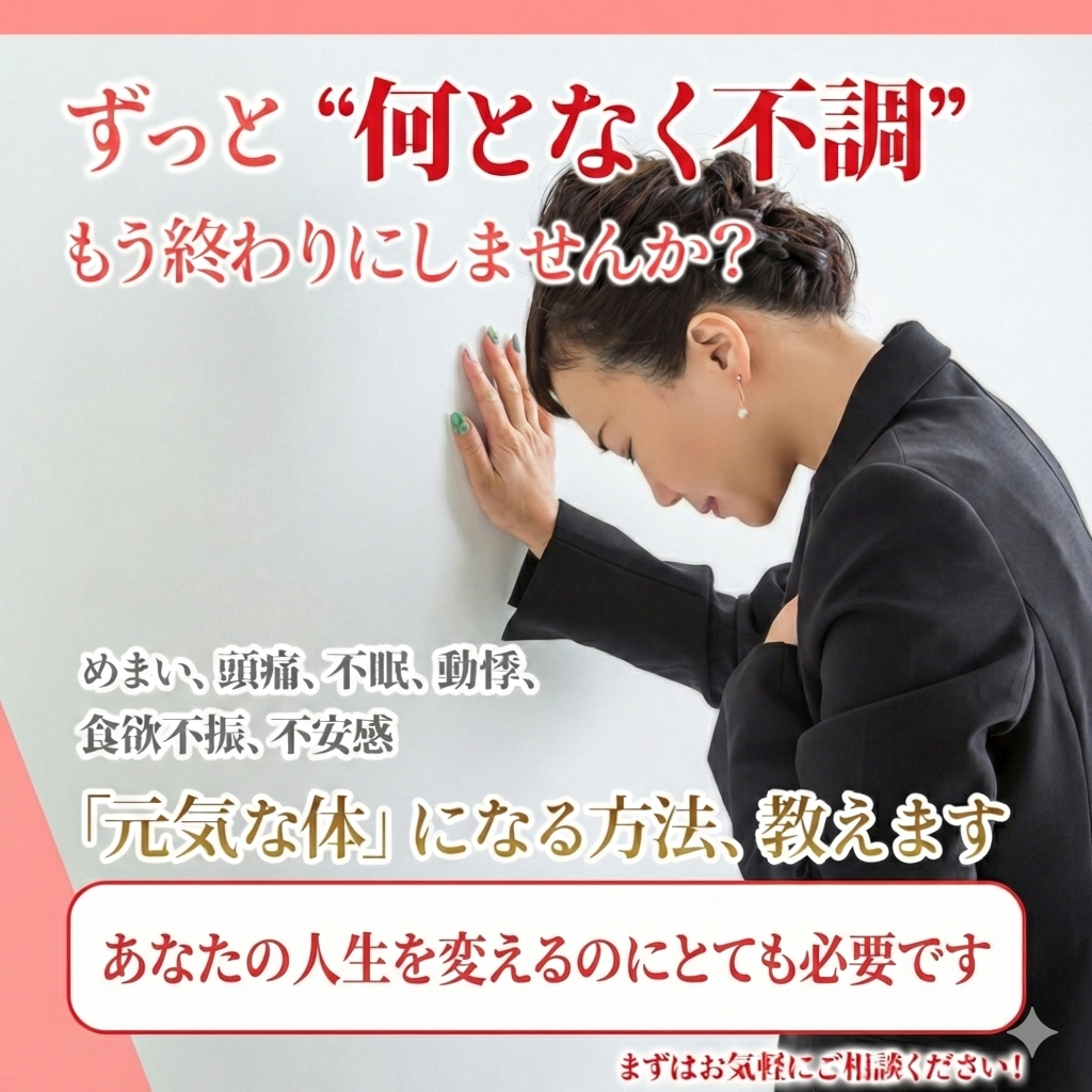 長期間続き、病院や薬では治らない心身の不調。