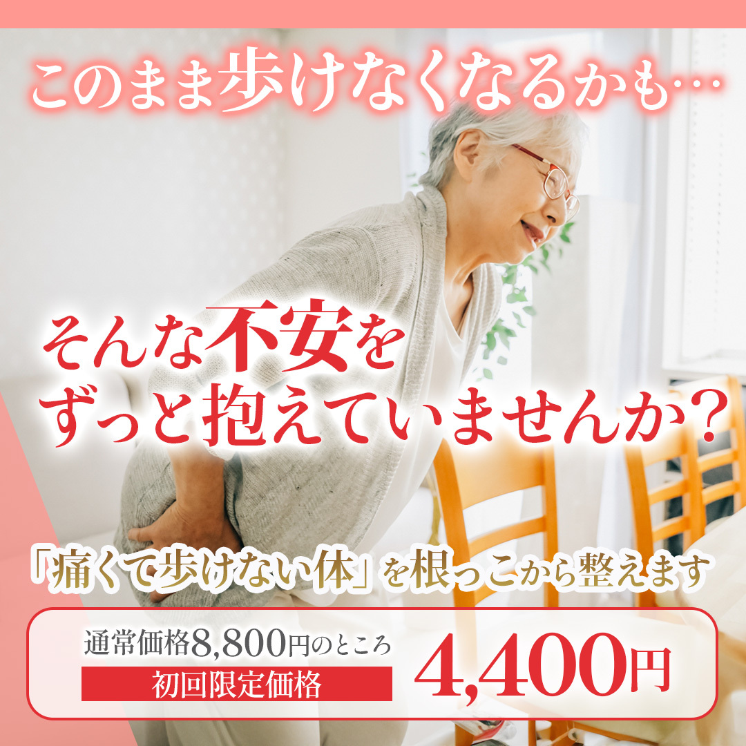 歩くのが遅くなる→歩きにくい→歩くと痛い→歩けなくなる、と悪化していきます。