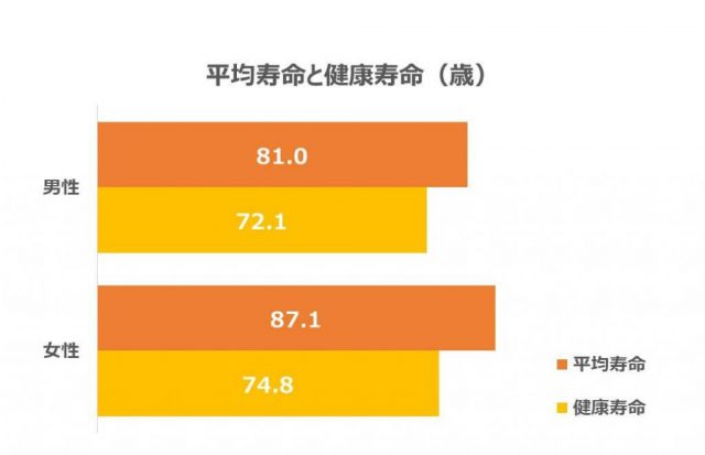 一方、健康寿命とは「健康上の問題がない状態で日常生活を送れる期間のこと」で